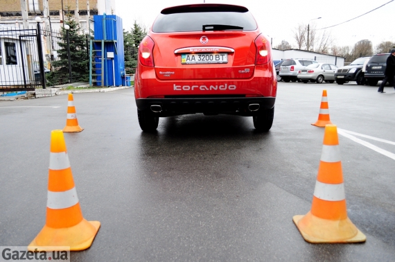 Розганяюся до швидкості 40 км/год. М'яка підвіска легко "ковтає" нерівності. У салоні трохи відчувається вібрація в, однак різких поштовхів немає. Двигун працює трохи гучніше, на тахометрі - понад 7500 обертів. Шумоізоляція цієї моделі значно краща, ніж у SsangYong Actyon. Розганяється повільніше, ніж у місті. Рамні Ssang Yong більш пристосовані до бездоріжжя, ними можна виїхати на гору із більшим кутом, у них більший кліренс.