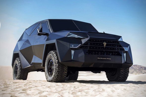 Зовнішній вигляд позашляховика нагадує Бетмобіль. В авто переважають межі і кути. Кузов броньований. Вага Karlmann King — 6 т.