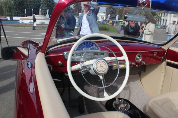 "Купив машину кілька років тому. Усе міняв власноруч, бо у придатному стані були тільки каркас і днище. З чотирьох дверей залишив двоє. Зрізав металевий верх і поставив нові колеса. Частину деталей залишив, частину замінив на нові, але рідні. Всередині встанови роздільні сидіння від сучасного авто і диван. Їх обтягнули бежевою шкірою. Знадобилося 12 метрів. Спеціальну фарбу для реставрації замовив зі Сполучених Штатів. Нанесли сім базових шарів фарби. Тому на сонці машина одного відтінку. У затінку - іншого", - розказує Gazeta.ua власник авто.