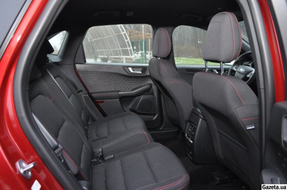 Карти дверей такі, як і спереду, але зроблені з твердого пластика. Так само робили і в попередній генерації "Куги". Підлокітника по центру немає. Проте він тут і не особливо потрібен.