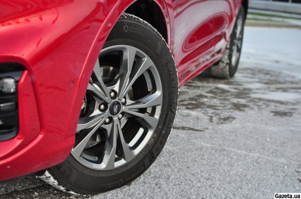 Колеса машини легкосплавні 18-дюймові із 60-м профілем. Кліренс, як і в попереднього покоління Kuga, становить 16 сантиметрів. Для міста цього достатньо. Для бездоріжжя хотілося б більше.