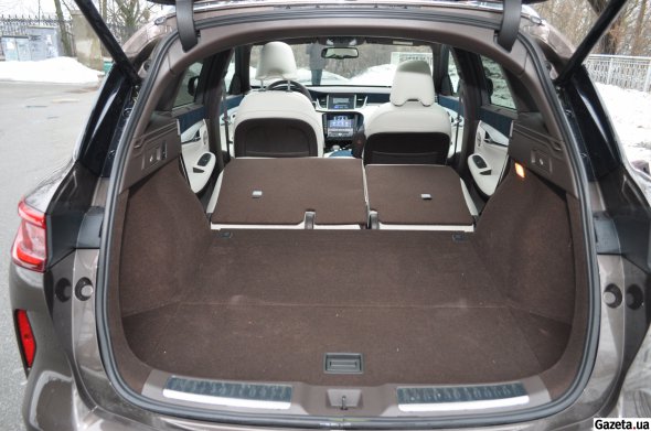 Багажний відсік новинки чималий — на 565 літрів. Він добре розпланований. З обох боків всередині вмонтовані гачки для пакетів і сумок. Є розетка на 12 вольт для під'єднання різноманітних пристроїв. Також є кілька ніш для дрібних речей.