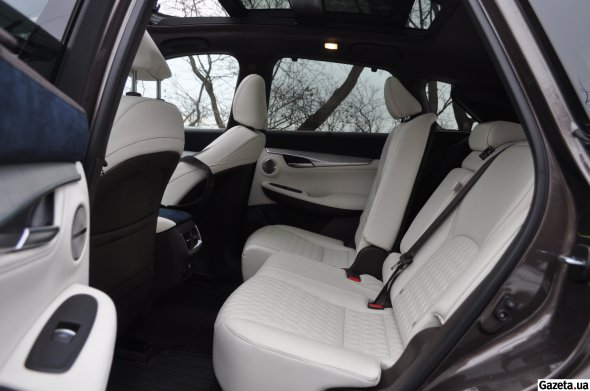 На другому ряду сидінь вільно поміщається троє високих людей. Чимало місця для ніг. Є підігрів сидінь. Крім цього для пасажирів передбачені окремі кліматичні налаштування із дефлекторами повітря й екраном, розміщені між передніми сидіннями.