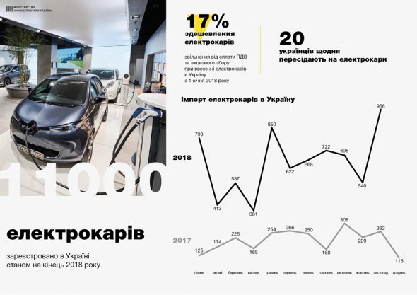Попит на електромобілі збільшився завдяки пільгам - звільненню від ПДВ і акцизу, кажуть у міністерстві. Знижка у 17% діяла з початку 2018-го. Крім того, пільги продовжили ще на 4 роки.