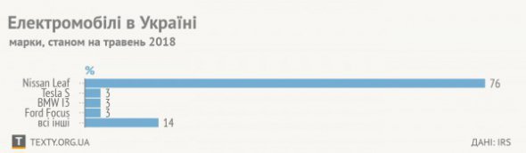 Найпопулярніша модель - Nissan Leaf - 76%.