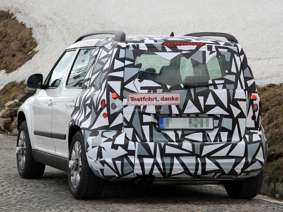 Незважаючи на абстрактний камуфляж, що частково приховує зовнішність кросовера, можна розгледіти, що рестайлінг позначиться і на бамперах Yeti, як передньому, так і задньому, не можна виключати і деяку модернізацію головної оптики.