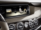 А ось фотографії інтер'єру зроблені, навпаки, всередині подовженої машини - це добре видно за великою кількістю простору між передніми кріслами і заднім диваном. Управляти всіма новітніми функціями седана можна буде не тільки за допомогою 12-дюймового сенсорного екрану на центральній консолі (він об'єднаний з панеллю приладів єдиним козирком), але і традиційними кнопками. У Mercedes-Benz вважають нелогічним відмову від звичних схем управління: у розпорядженні водія і пасажирів S-класу - цілих 156 клавіш. Втім, розташовані вони таким чином, що їх велика кількість не впадає в очі. Наприклад, центральна консоль, за даними виробника, "прикрашена" тільки 19 кнопками, зате на водійських дверях розміщені відразу 23 клавіші.