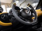 У салоні нового Smart два сидіння, оббиті натуральною шкірою і мікрофіброю. Електромобіль також отримав кермо у формі штурвала літака.