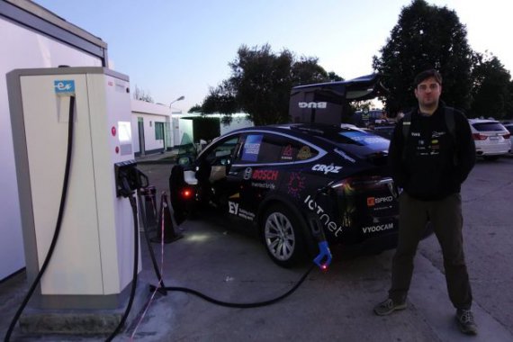 Під час переїзду для зарядки акумуляторів електромобіля водії користувалися рідкісними зарядними станціями, а при їх відсутності і при неможливості підключитися до звичайної електромережі - електрикою від генератора, який був встановлений в технічній машині, що супроводжувала Model X.