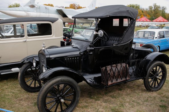 Найстарший автомобіль виставки є першою моделлю, яку виготовили на конвеєрі. Це перший масовий легковик у світі. За час виробництва цієї моделі протягом 1908-1927 років їх випустили понад 15 млн одиниць. Двомісне купе-кабріолет з Америки не має спідометра, замість датчика температури - термометр, який знаходиться зверху на радіаторі, а ручку перемикання швидкостей замінюють три педалі - вперед, назад і гальмо.
