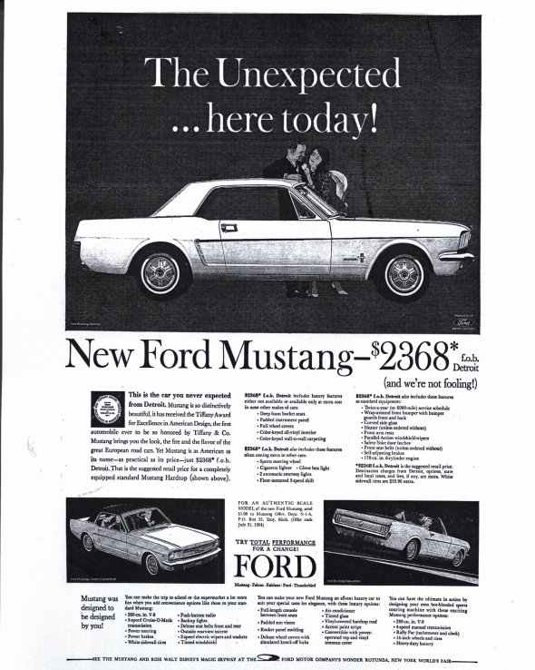 Розрекламувати Ford Mustang привернули 2600 газет, 68 журналів. Сумарна аудиторія цих медіа нараховувала 68 млн осіб.