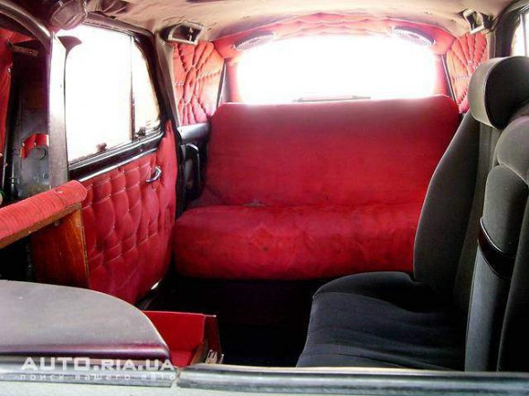 У автомобілі є олдскульний телефон, холодильник, бар, люк.