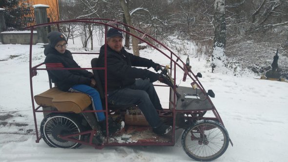 "Я займаюся бджолярством і часто треба їздити розставляти пастки на бджіл. На пасіку - 25 кілометрів. Мені тяжко туди добиратися велосипедом, бо я інвалід. Спочатку думав про автомобіль, але то дорого. Ціна на солярку тоді підскочила - більше 30 гривень. Так я вирішив зробити невеличкий електромобіль," - розповідає Василь Тертека.