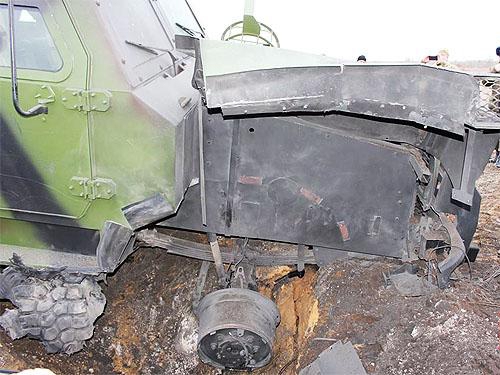 Підрив міни під колесом "Козак-2" привів суттєвіших руйнацій. Вибух біля броньовика відірвав диск з колесом і розвернуло все крило.