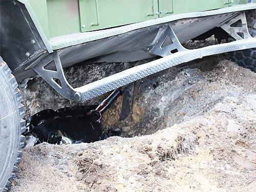 Автомобіль підривають у два етапи. Спочатку 6 кг тротилу підривають під днищем бронеавтомобіля, а потім 6 кг підривають під переднім колесом.