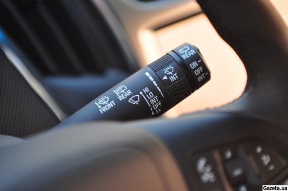 На водійському місці сидіти зручно. Сидіння можна регулювати за висотою й змінювати рівень поперечної підтримки. Рульове колесо обтягнуте шкірою. На ньому кнопки керування мультимедійною системою, телефонними дзвінками та круїз-контролем.