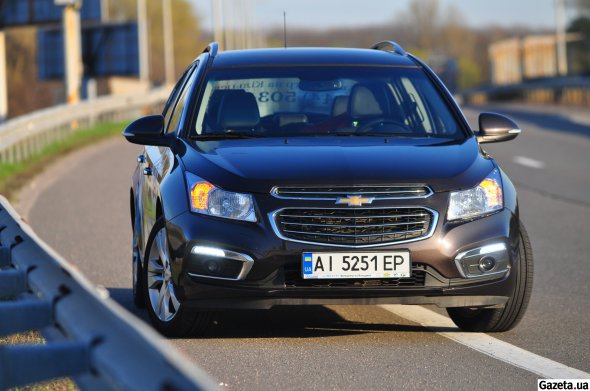 Новий "Круз" має масивну, розділену на дві частини, решітку радіатора. Над протитуманними фарами — світлодіодні ходові вогні, що автоматично вмикаються після запуску двигуна. На даху — металеве кріплення для багажника.