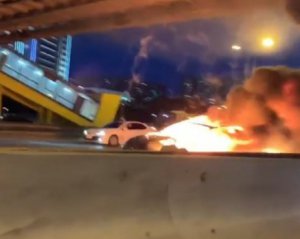 У Москві на кільцевій автодорозі вибухнув і згорів електромобіль Tesla.