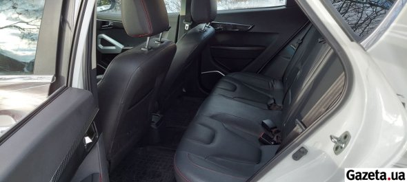 Подушка заднього дивану за шириною нормальна, але хотіло б, аби воно було розміщено під пільшим кутом - це дозволило б зручніше вмоститися високим людям.