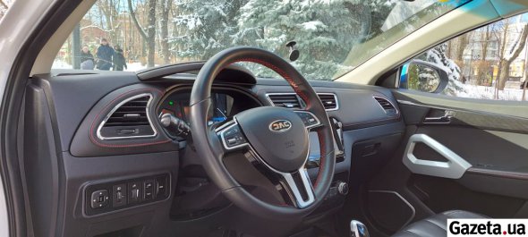 Машина оснащена кнопкою запуску двигуна, електричним ручником і великим екраном. З нього можна керувати мультимедійною системою і комп'ютером. На жаль, у машини в меню тільки дві мови - китайська й англійська. Української чомусь немає.