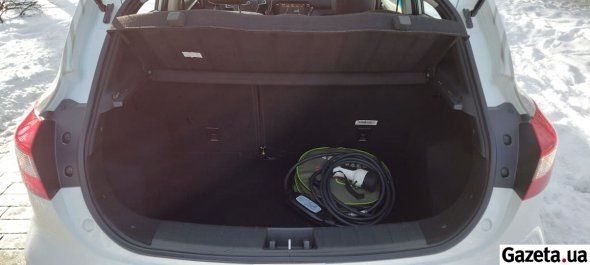Недоліком багажника електромобіля є занадто велика завантажувальна висота. Потрібно високо піднімати вантаж, аби його туди покласти. Не завадило б і пару металевих гаків для кріплення речей. Зазвичай їх встановлюють у кросоверах.