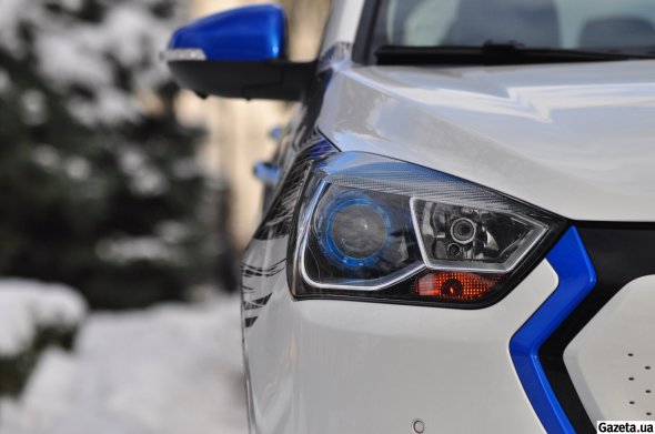 Я їздив машиною при температурі -7 і +1. Вмикав пічку й підігрів сидінь. За такого режиму їзди я зміг проїхати 100 кілометрів. Коли комп'ютер показував ще 40%, я вперше зарядив акумулятор до 80 відсотків. Можна сказати за такої температури у стилі активного водіння авто проходить десь 160-170 кілометрів. Якщо увімкнути економічний режим і рухатися з мінімальними прискореннями й помірною роботою пічки, можна розтягнути запас ходу при мінусовій температурі ще на 25-35 кілометрів. Влітку ми не випробовували машину, але виробник обіцяє 300 км запасу ходу.