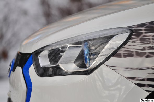 Фари машини - масивні, мають завужену до краю фому. У них встановлені галогенні лампочки із лінзами. Над противотуманками у бампері вмонтована світлодіодна лінія ходових вогнів. Зручно, що протитуманки автоматично вмикаються залежно від того, у який бік водій повертає кермо. Якщо ліворуч, загоряється ліва фара, праворуч - навпаки. Це зручно під час повороту вночі на неосвітлені ділянки дороги. Таку систему часто використовують у французьких машинах. Наприклад, у "Пежо Ріфтер", "Сітроен Берлінго" тощо.