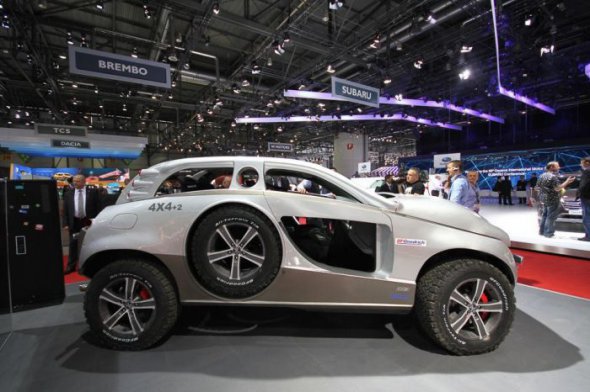 Моторошний псевдо-баггі показала на Женевському автосалоні компанія Sbarro. Експерти компанії любилять дивувати автолюбителів своїми незвичайними машинами. Цікаво, що подібні авто Sbarro створює тільки для виставки в Женеві.