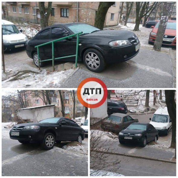 В одному з дворів Солом'янського району Києва помітили автомобіль, припаркований на сходах. Фото автомобіля героя парковки опублікував на своїй сторінці в Facebook Владислав Антонов.