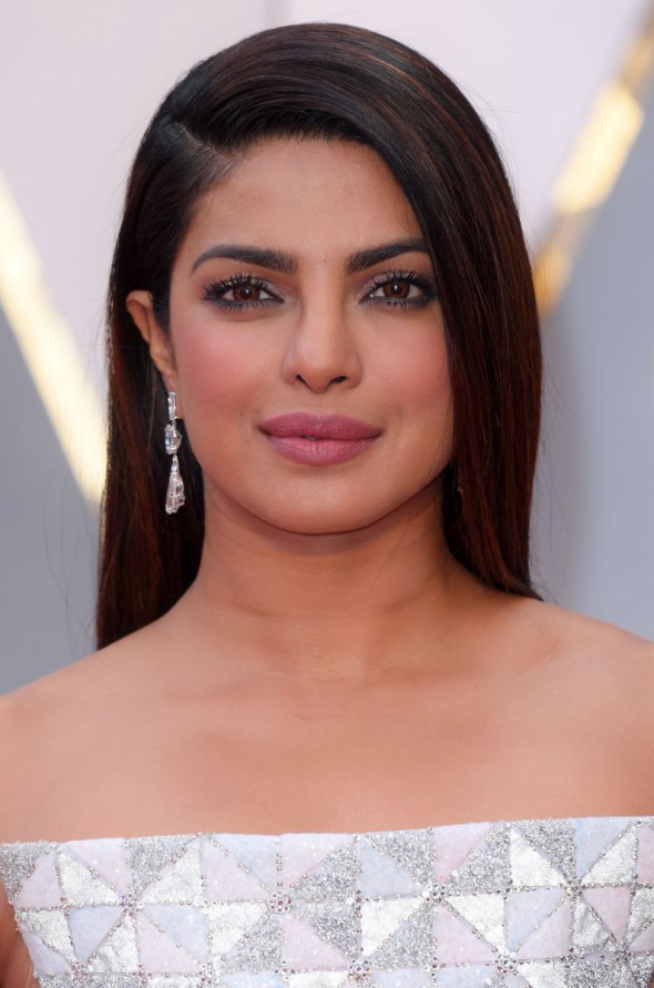 Індійська актриса та модель Пріянка Чопра виглядала надзвичайно з ідеально рівним волоссям на косий проділ. Акцент в макіяжі зірки був зроблений на очі - виділені за допомогою лайнера темно-зеленого металевого відтінку.