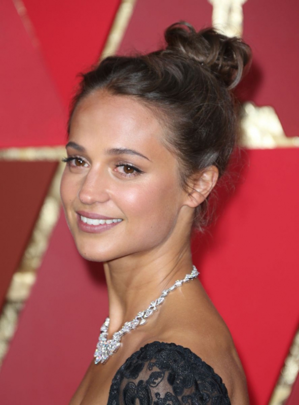 Алісія Вікандер, вже за традицією, зробила ставку на природність. Техніка "макіяж без макіяжу", якій віддає перевагу актриса, стала її фішкою. Зірка з'явилася з мінімумом косметики, але з нарощеними віями, що підкреслювали виразність погляду. Волосся було укладене в недбалий пучок.
