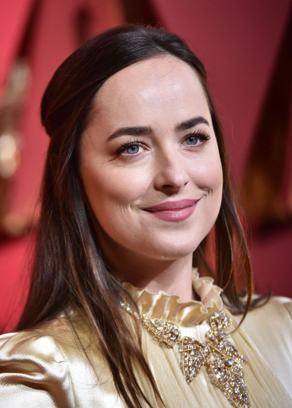 Зірка фільму "50 відтінків сірого" Дакота Джонсон зробила ставку на м'яку рожево-коричневу гаму. Акцент на ідеальній шкірі та матовому покритті губ.