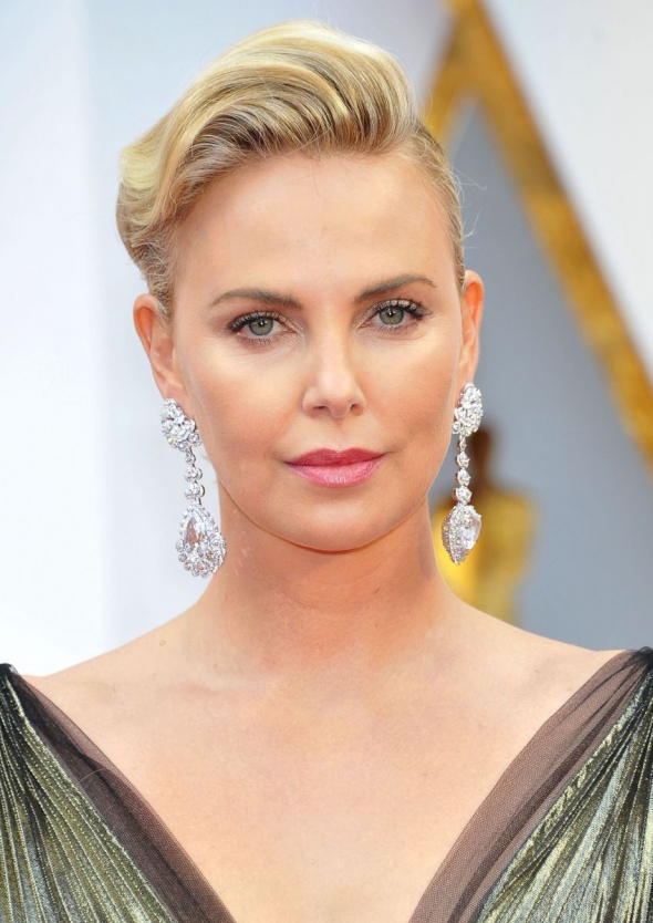 41-річна Шарліз Терон вразила публіку вишуканим та стриманим образом. Актриса показала дорослу елегантність за допомогою укладеної в пучок зачіски з начісом в ретро-стилі. Макіяж виконаний в максимально природному варіанті від фахівців Dior.