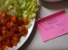 На обід вона обрала кокос та каррі на основі жасминового рису. Вечеря — солодка картопля з овочами.