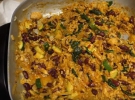 Вечеря — також з овочами та квасолею замість м'яса. Інгредієнти: цибуля, гриби, кабачки, шпинат, рис, консервовані помідори та квасоля.