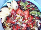 Пізніше дівчина випиває коктейль з бананів, ківі, кокосового горіху, насіння Чіа та полуниці.