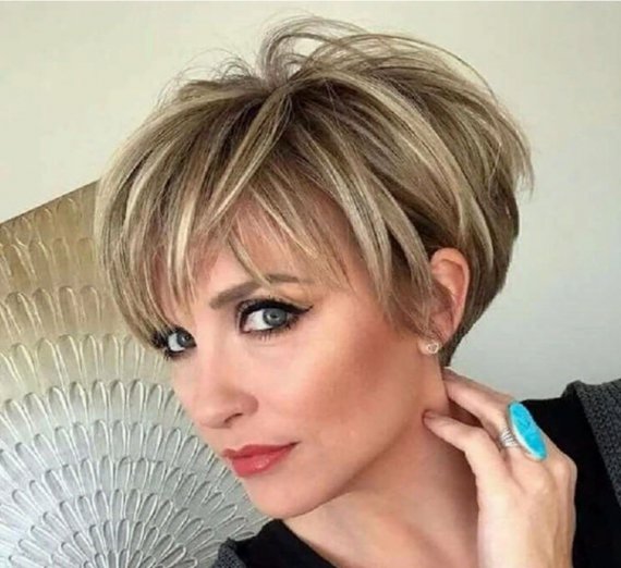 Коротка стрижка завжди обманює вік. Крім того, можна зробити об'єм від коренів.