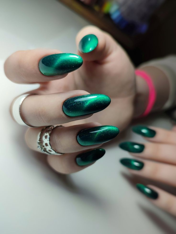 Одна з найпопулярніших нейл-ідей для святкової вечірки. Використовуйте відтінки смарагдового, червоного, бордового чи синьо-фіолетового. Вони мають елегантний і естетичний вигляд і і не набридають на наступний день.