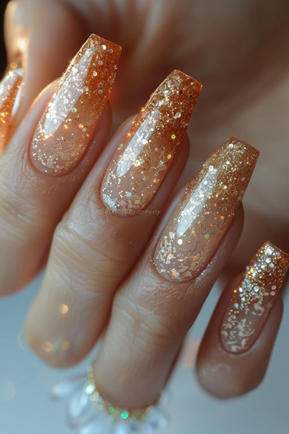 Золотий чи срібний варіант манікюру ідеально підходить для святкування Нового року. Ви можете нанести блискітки на всі нігті, поєднати їх зі смарагдовим чи червоним або зробити френч.