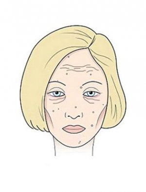 Ось уже більше десяти років Нігма Таліб досліджує проблеми старіння шкіри: як і чому з'являються зморшки, чому в одних раніше старіють очі, а в інших лоб, чому хтось ніяк не може позбутися пігментних плям на підборідді, а хтось бореться з безпричинним висипом на щоках. Проаналізувавши сотні випадків, дерматолог виявила чотири основні типи старіння шкіри. Кожен з випадків - це наслідок неправильної дієти і непомірного вживання їжі. "Будь-які проблеми з травленням викликають цілий ряд хімічних і гормональних змін, які прискорюють процес старіння внутрішньо і зовні, а результати швидше за все проявляються на обличчі", - стверджує Таліб.