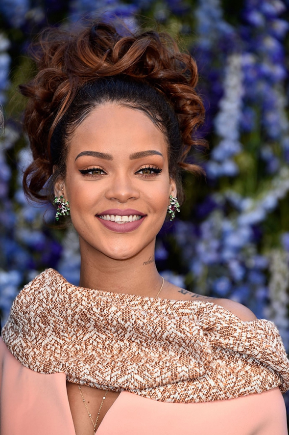 Найкращим та найсвіжішим став образ співачки Ріанни. Сяючу шкіру оливкового кольору, вона підкреслила темно-нюдовою помадою та класичними стрілками на очах. Свій образ зірка продемонструвала на показі бренду Christian Dior.