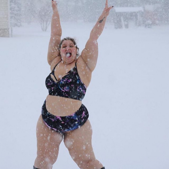 Блогер plus-size Лія Стенлі з Вермонту, США, виставила на власній сторінці в соцмережі фото в бікіні під час сніжного шторму. Таким вчинком намагається довести любов до себе у будь-якому вигляді.