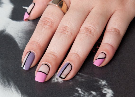 "Голий манікюр"- це візерунки у вигляді геометричних фігур. При його створені лаком покривається лише частина нігтя, пише журнал "Единственная".