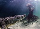 Американський фотограф Кен Кіфер влаштував своїй дружині Кімбер і моделі Мелоді Тревіно фотосесію з крокодилами біля мексиканського коралового рифу Банка Чінчорро.