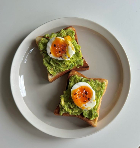 Приготування: Підсмаж хліб. Авокадо розімни з сіллю. Яйце пашот - у киплячу воду з оцтом на 3 хв. Збери все разом - естетика на тарілці.