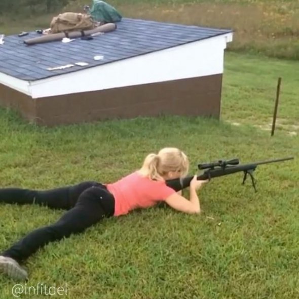 Колишня військова із США підкорює мережу, публікуючи фотографії у сексуальних бікіні зі зброєю у руках. Жінка приховує справжнє ім'я під ніком Infitdel. Вже має більше 135 тис. підписників в Instagram.