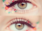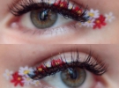 На перший погляд цей макіяж здається важким у виконанні. Створити його насправді досить легко. Вам знадобляться кольорові олівці для повік з матовою текстурою. Уникайте перламутрових та олівців з блискітками. Квіти найкраще малювати в зовнішніх куточках очей.