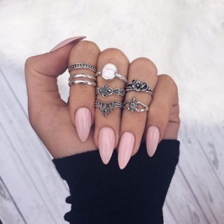 Форма має схожість з мигдалем: овальна та трохи загострена на кінчику. Вона вимагає особливо ретельного підбору відтінків лаку для нігтів, аби не виглядати вульгарно. Така форма гарно поєднується з довгими нігтями.