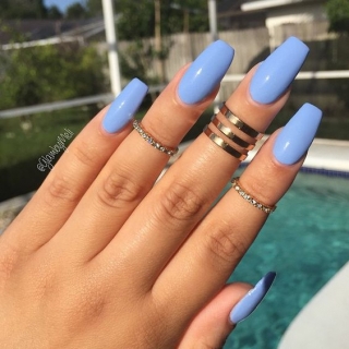 Ця форма нігтів дійсно нагадує взуття балерини. Завдяки квадратним кінчикам, шанси зламати ніготь близькі до нуля. "Пуанти" ідеально поєднуються з середньою довжиною нігтя. Така форма повернулася до нас з 90-х. Зараз тренд дуже популярний серед молодих західних зірок.