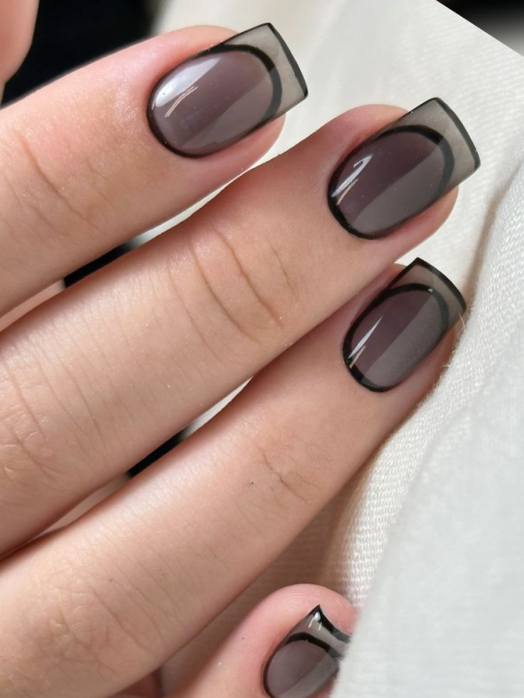 Стильний варіант, який зробить ваш стиль не банальним. Замість класичних білих кінчиків, нанесіть темний лак і покрийте глянцевим топом. База може бути молочною, білою або бежевою.